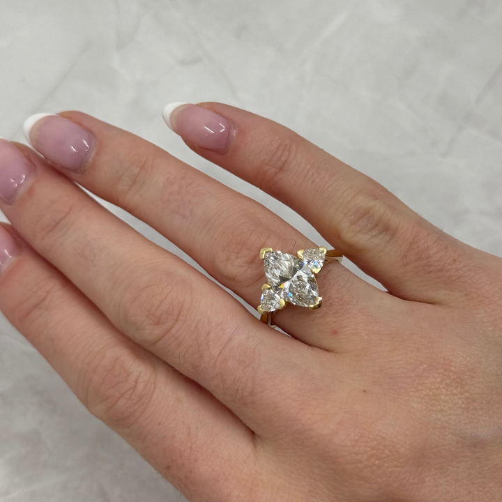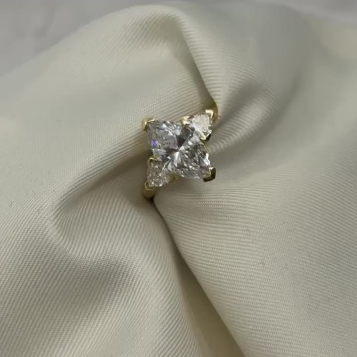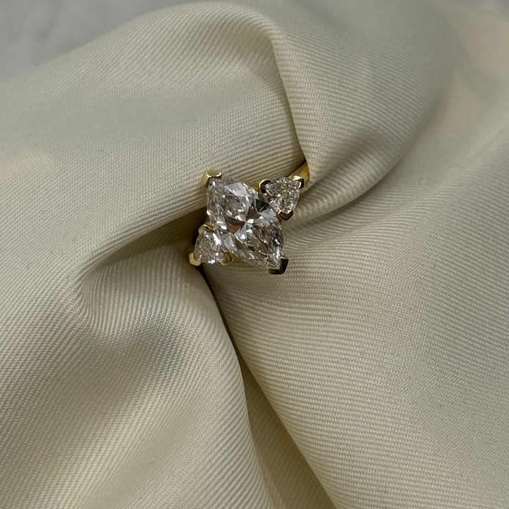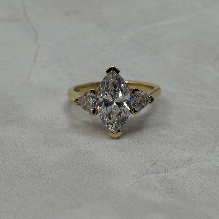 Our 18ct Yellow Gold Ring features stunning claw set 3.08ct total LAB grown diamonds. This bold and modern design radiates fire and brilliance.