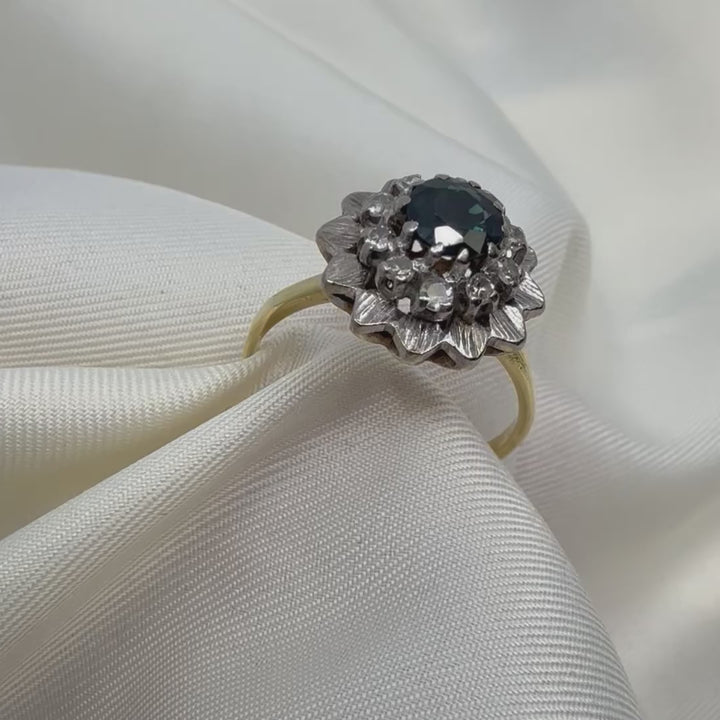 18ct Yellow Gold and Platinum Vintage Sapphire and Diamond Floral Ring