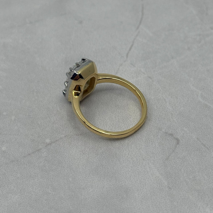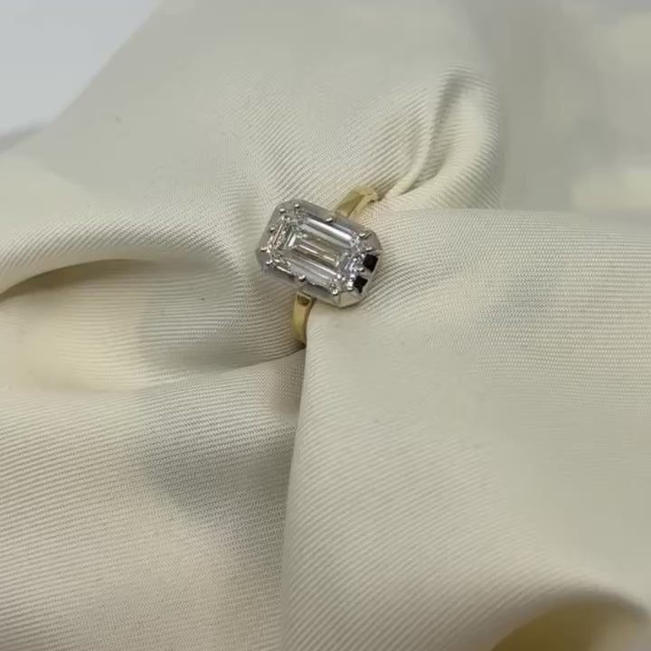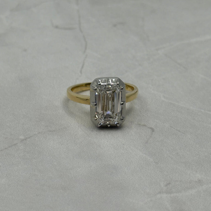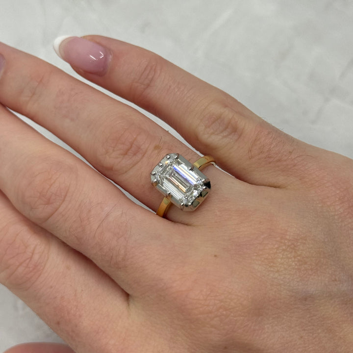 18ct Yellow & White Gold 3.01ct LAB Emerald Cut Diamond Ring - Georgian Style