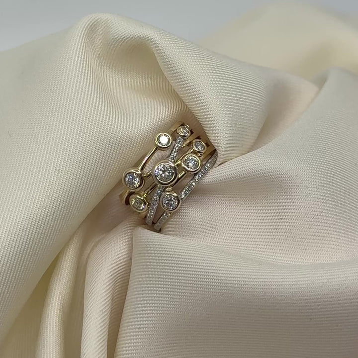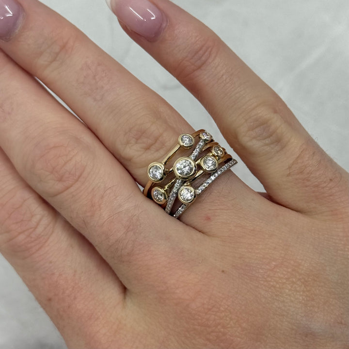 9ct Yellow Gold And Diamond Multi Row Bubble Ring