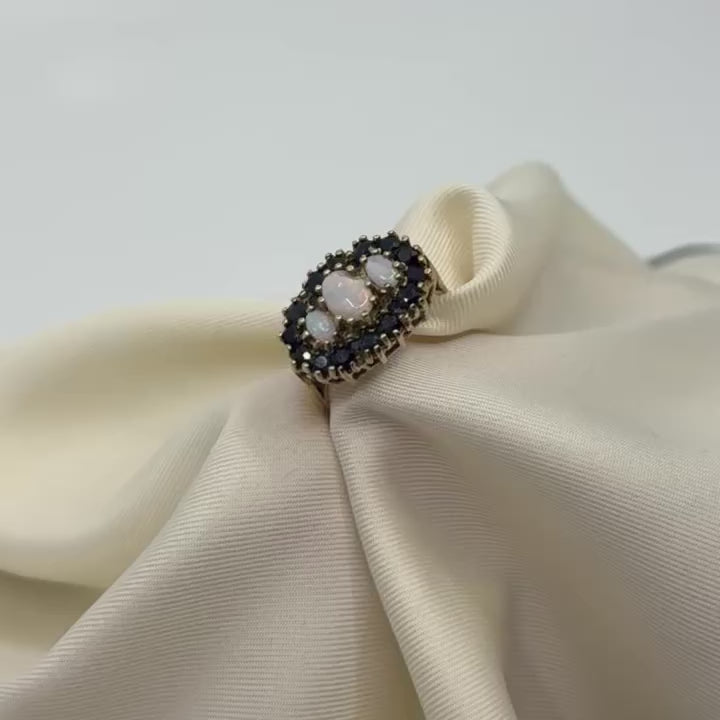 9ct Yellow Gold Sapphire And Opal Vintage Ring