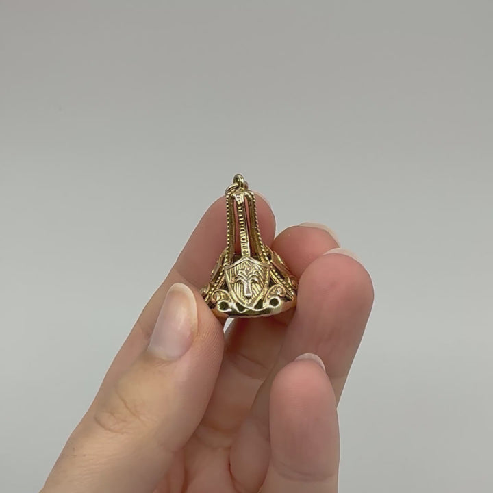 From our pre-owned vintage collection, this 9ct yellow gold watch fob has a Chrysophase quartz beautifully etched with either an Ancient Roman or Greek Soldier’s head.
