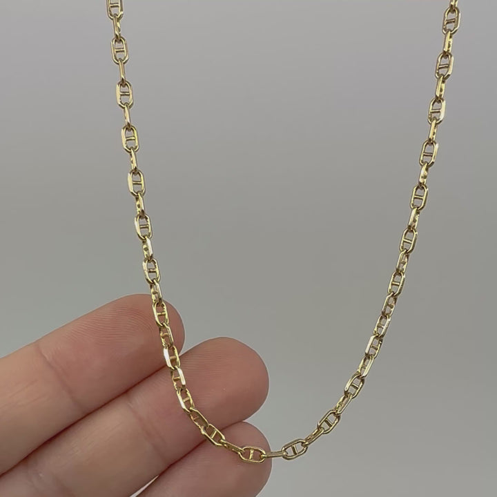 From our pre-owned vintage collection, this 9ct yellow gold 19” mariner chain looks lovely when layered with multiple vintage chains.