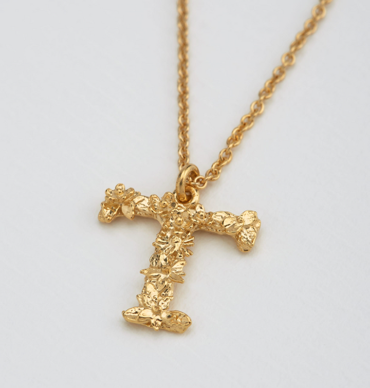 Bursting with tangled blooms, sculpted leaves and intricate petals, every individual letter necklace in Alex’s Floral Alphabet has been created by hand in our London Workshop. Every initial has it’s own unique arrangement of florals and foliage.