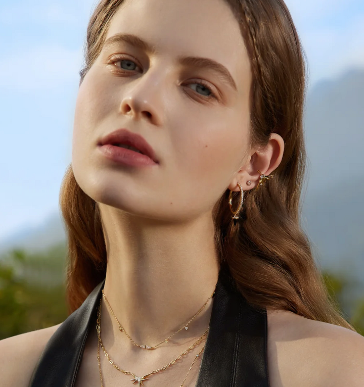 Opt for sparkle and edgy black detailing for your new-season jewellery update with these 14kt gold-plated sterling silver drop hoop earrings. Featuring a stunning black agate point, the hoops are encrusted with shimmering cubic zirconia stones, set on shiny and sleek gold. Perfect to add a touch of glam rock to any look this season!