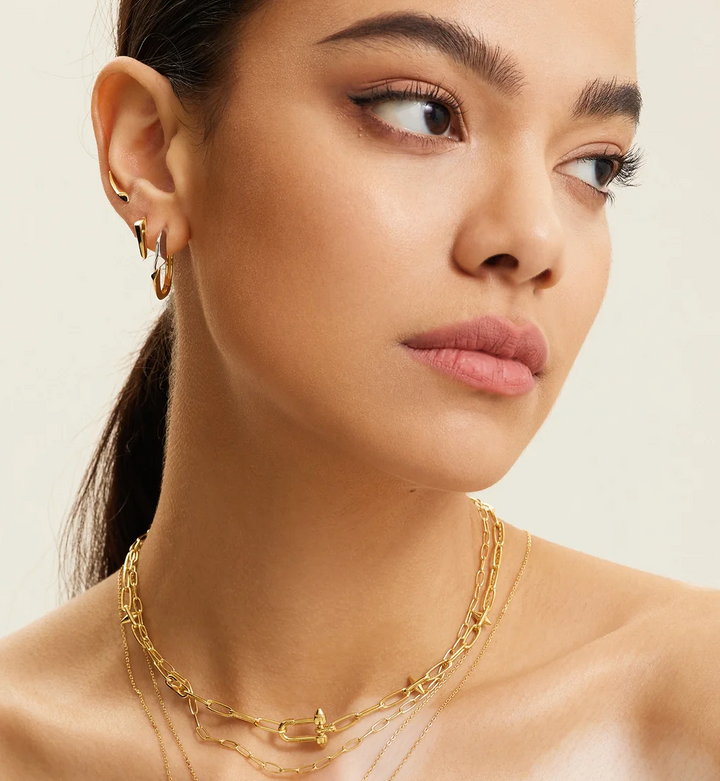 Nodding to this season’s elevated hardware trend, our angular huggie hoops are the perfect addition to your daily jewellery collection. Crafted in 925 sterling silver and plated in 14kt shiny gold, they are an edgy alternative to a classic round huggie hoop and perfectly pair with your go-to studs and huggies. On-trend and effortless!