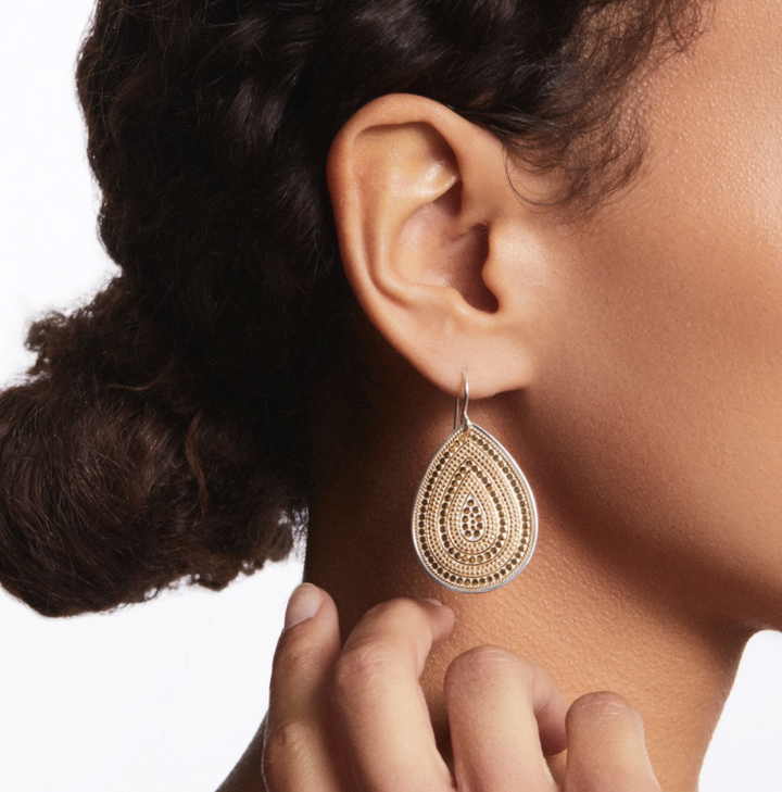 The intricate design of our teardrop earrings is a result of the skill and technique of our artisans—every dot is handmade and hand-placed, giving an intricate texture to this classic shape.