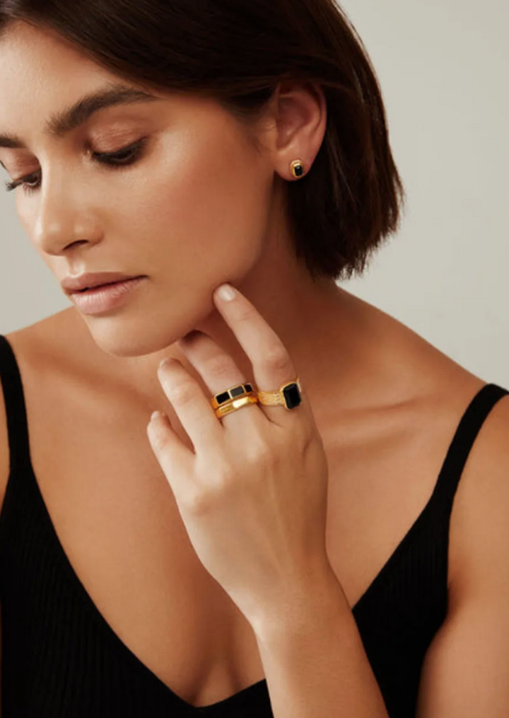 Anna Beck Large Black Onyx Gold Rectangle Ring