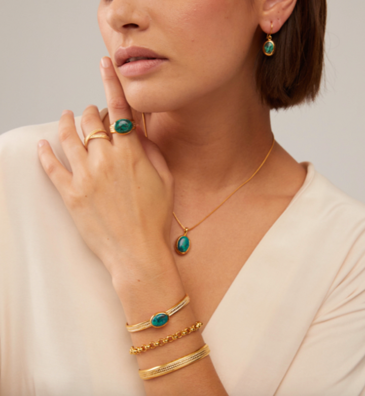 - 18k Gold-plated over Sterling Silver with Malachite Chrysocolla stone