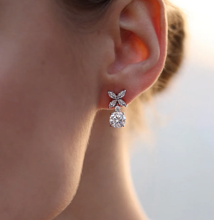 These beautiful drops feature Round Brilliant stones that wonderfully catch the light from every angle. With a total drop of 2 cm, this piece guarantees instant glamour to complete your look for your next social gathering.