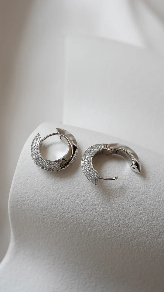 A versatile chunky pave hoop earring that has day-to-night wearability. A delicate clicker holds them securely for as long as you need.