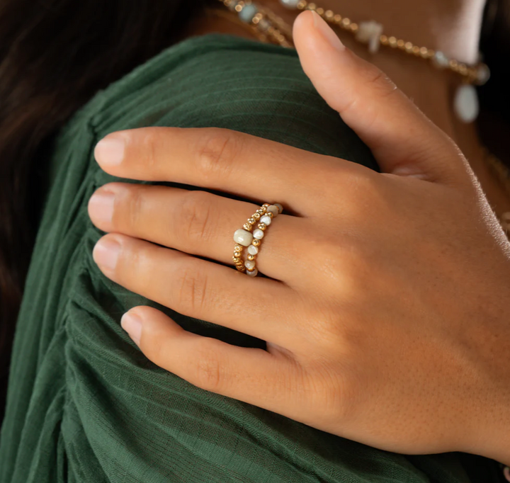 Embody the tranquil energies of Bali with the Peace & Balance Set of 2 Rings. Fusing natures soothing elements with amazonite, encouraging balance and harmony, and mother of pearl, providing protection and healing, this powerful blend reflects the island’s calming spirit, grounding its wearer in peace and positivity.