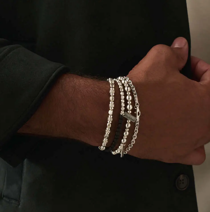 This textured, statement piece is a standalone showstopper, featuring chunky cube beads to add depth to any look. Slip this into your signature ChloBo MAN stack for a fuller layered look.