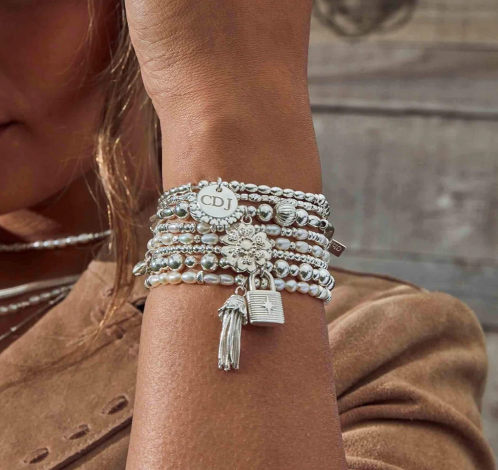 Let the star be a reminder to stay patient and trust the journey and allow the padlock charm to lock in your memories, so that they can be treasured forever. Follow your path and lock in your dreams. Handmade using 925 sterling silver 4mm and 6mm beads, this Mini Small Ball design is great for adding a new statement piece to your stack.