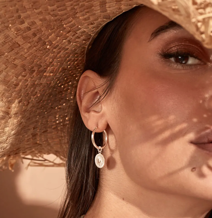 You can wear the delicate sun disc charm as a symbol of growth and spiritual maturity, representing balance and harmony within your character. With a diameter of 18mm, these hoop earrings are perfect for day and night!