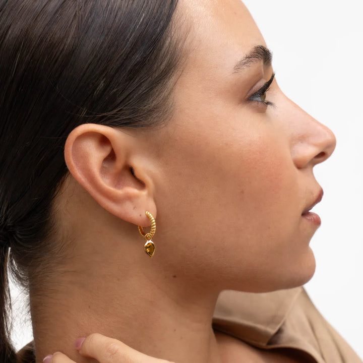 Dower & Hall Gold Citrine Twist Huggie Charm Hoop Earrings