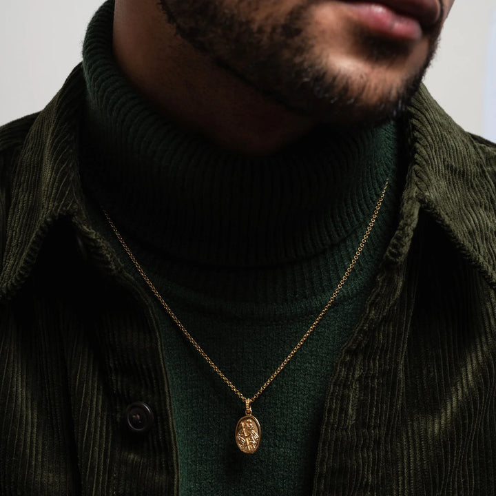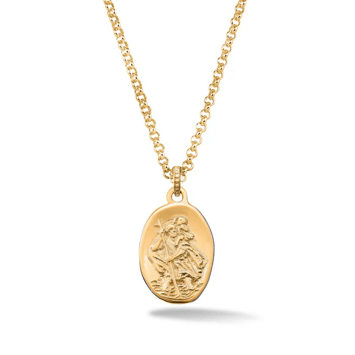 Traditionally given to a loved one who will be travelling, a St. Christopher is seen as a protector to keep them safe on their journey. This sterling silver necklace has a St. Christopher suspended on belcher chain, complete with a radiant 18ct yellow gold vermeil finish. Travel the world and navigate life’s journey protected and guided by your own collection of amulets and talismans.