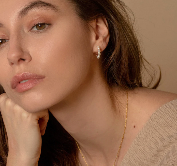 Beautifully handcrafted in our London studio, this sterling silver hinged huggie Timeless hoop design is set with lustrous white freshwater pearls and is a timeless classic jewellery box essential.