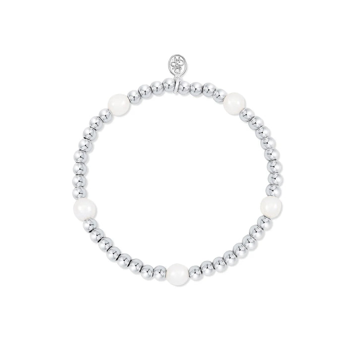 Mix, match and stack these bracelets to your heart’s content! This elasticated Misanga Bracelet is thread with a blend of sterling silver spheres and links, with a half-strand of lustrous white freshwater pearls. The bracelet is elasticated for a comfortable, snug fit.