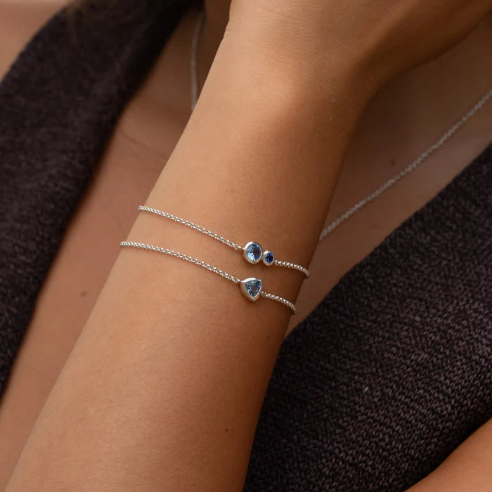 Crafted from sterling silver, this handmade chain bracelet features a striking trillion-cut blue topaz that will captivate you with its eye-catching blue colour. Wear as a standalone piece or stack with other bracelets for a layered look.