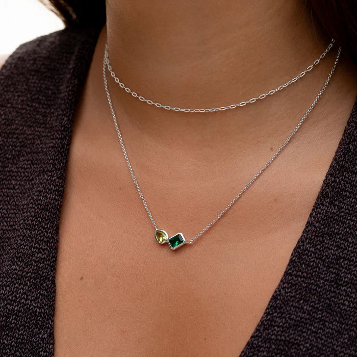 Suspended on fine sterling silver belcher chain, this eye-catching octagon green garnet and pear-cut peridot gemstone pendant adds the perfect pop of colour to any outfit and catches the light beautifully. The necklace is finished with a signature D&H lobster catch.
