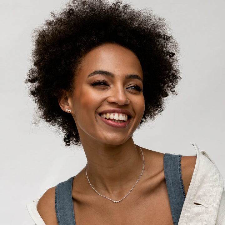 From our Timeless Pearls range, this pair of 12mm sterling silver studs feature a line of 3 white freshwater pearls. These elegant earrings are finished with a post and butterfly back. A Timeless classic jewellery box essential.