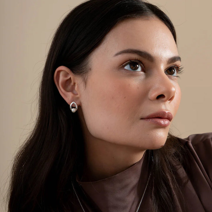 A new take on classic pearls, these sterling silver oval studs feature our signature hammered finish and are adorned with 6mm white freshwater pearls.