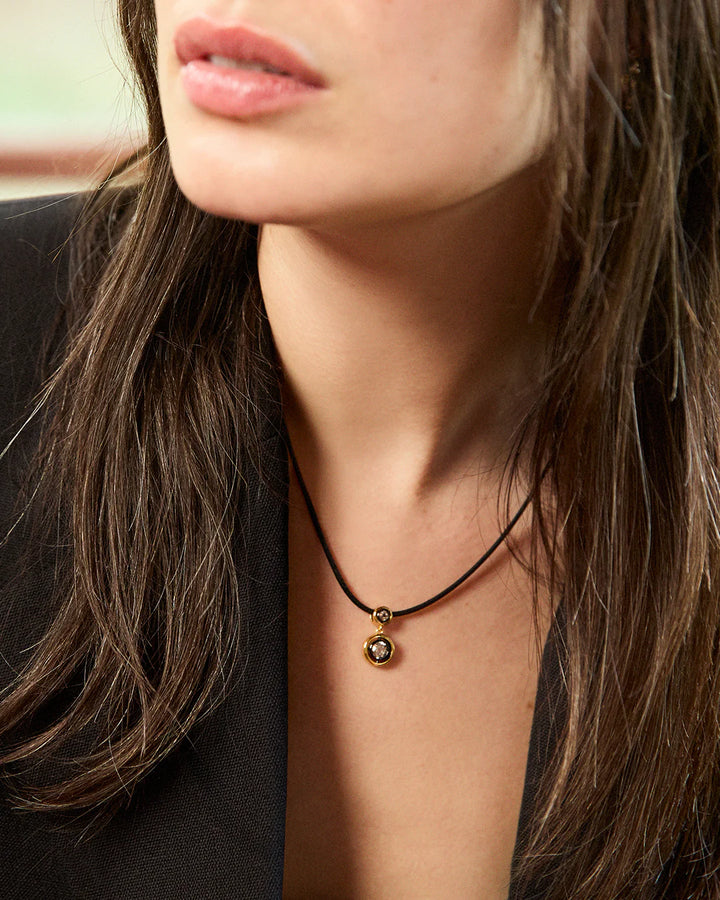 A centennial homage to the enduring influence of Art Deco, this black cord necklace features a sculptural pendant of interlocking black and 18ct gold-plated circles, illuminated by round-cut white topaz. Grounded in bold contrast and clean form, it reflects the Form collection’s focus on precision, purpose, and striking versatility - a confident accent designed to elevate the everyday.
