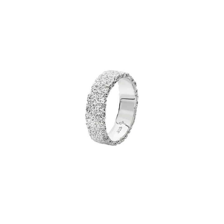 This bold sterling silver ring is a perfect blend of timeless elegance and modern design. Crafted with a textured surface and finished with a rhodium overlay, it offers enhanced shine and durability. Whether worn as a statement piece or paired with other jewellery, this ring is a sophisticated addition to your collection.