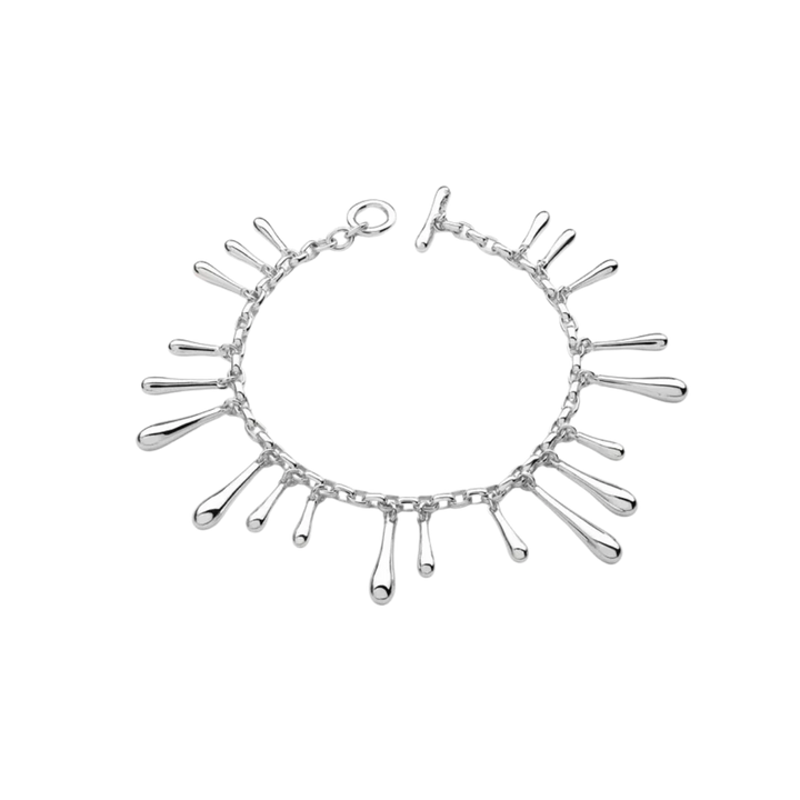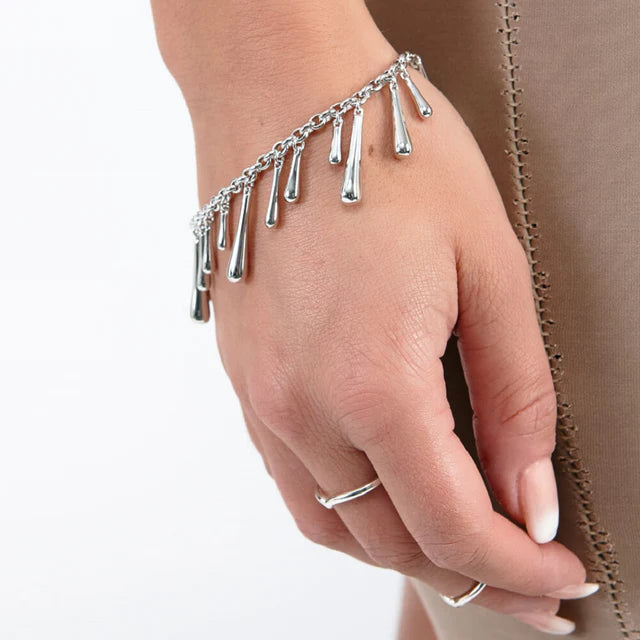 This elegant Multi-Drop Bracelet is crafted to make a statement, with 20 solid silver drops of varying sizes that create a stunning and dynamic look. Handcrafted from 925 sterling silver and finished with a rhodium overlay, this bracelet is both beautiful and durable.