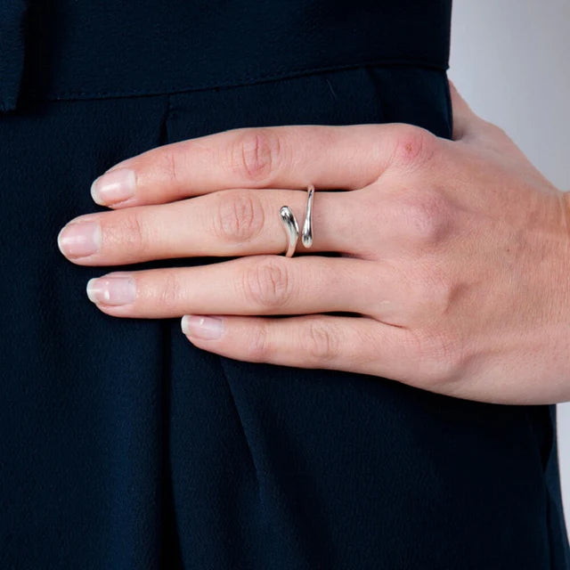 The Open Drop Ring from Lucy Quartermaine’s iconic Drop Collection is a versatile and stylish design. Featuring a tear-shaped sterling silver band, it gracefully encircles your finger and can be easily adjusted for a perfect fit. Handcrafted from 925 sterling silver with a rhodium overlay, it offers long-lasting shine and durability.