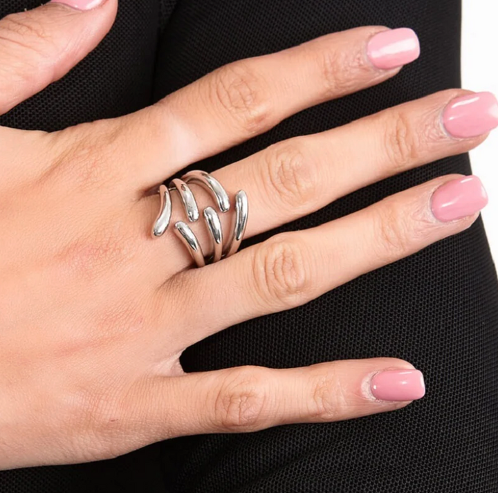 This bold Drop Silver Ring showcases six striking sterling silver droplets that wrap elegantly around the finger, making it a statement piece for any jewellery collection. Handcrafted from 925 sterling silver with a rhodium overlay, it ensures durability and lasting shine.