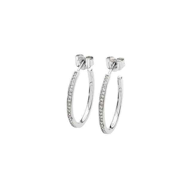 These Sterling Silver hoop earrings are an essential addition to your collection. Designed with white topaz gemstones, they exude elegance and subtle sparkle. Perfect for both day-to-day wear and evening occasions, they offer a timeless style with a contemporary twist. The high-quality finish and secure butterfly back fastening make them comfortable and versatile for any look.