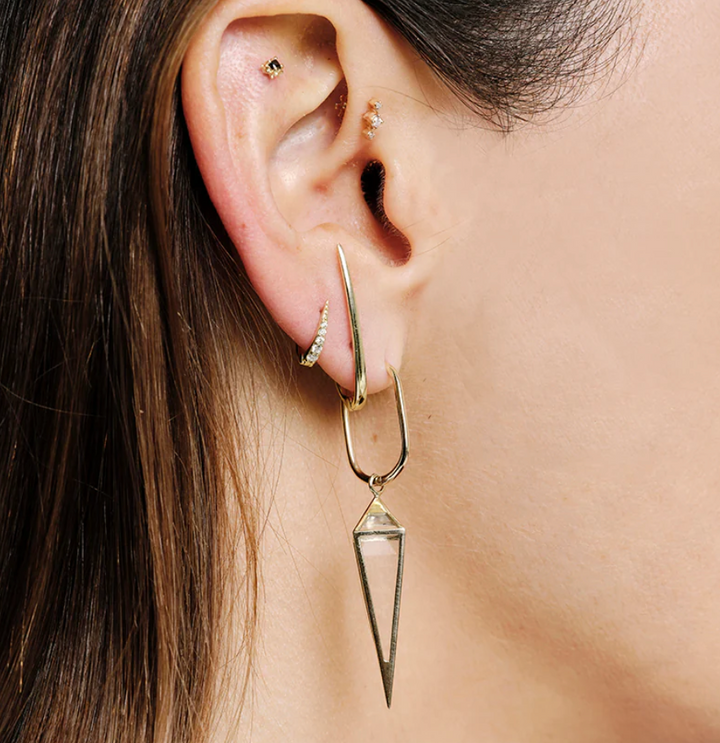 The métier Long Skinny Point Huggies are part of our Point collection. The clasp is lever back clasp that is suitable for everyday wear.