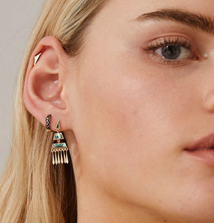 Our Dala Enamel Huggies 2.2 are crafted from 9ct yellow gold with coloured enamel. From our bestselling Dala collection, each piece features patterns and shapes inspired by the geometric symbolism of Mandala. The huggie clicks into place and hugs around the ear.