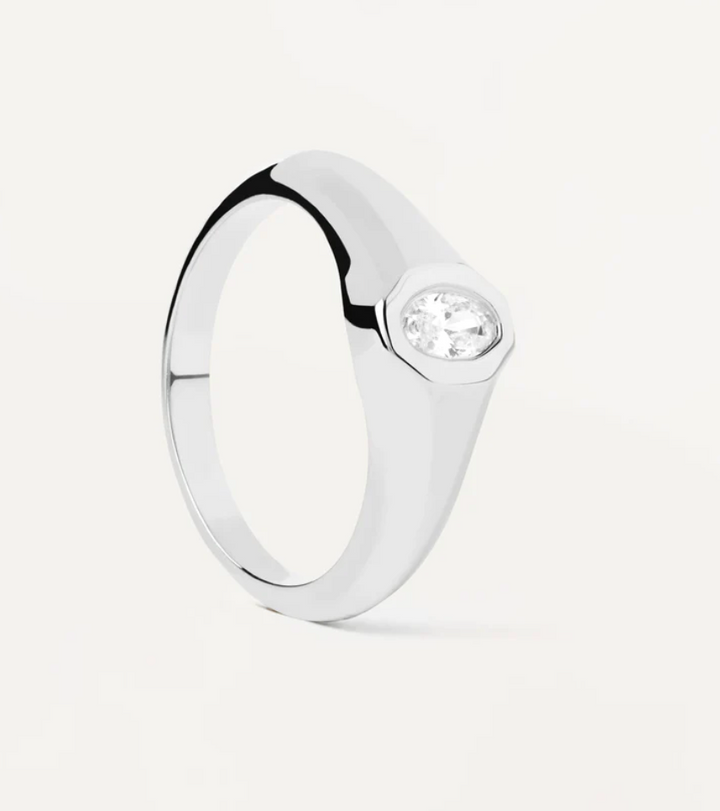 Sterling silver signet ring with oval white zirconia.