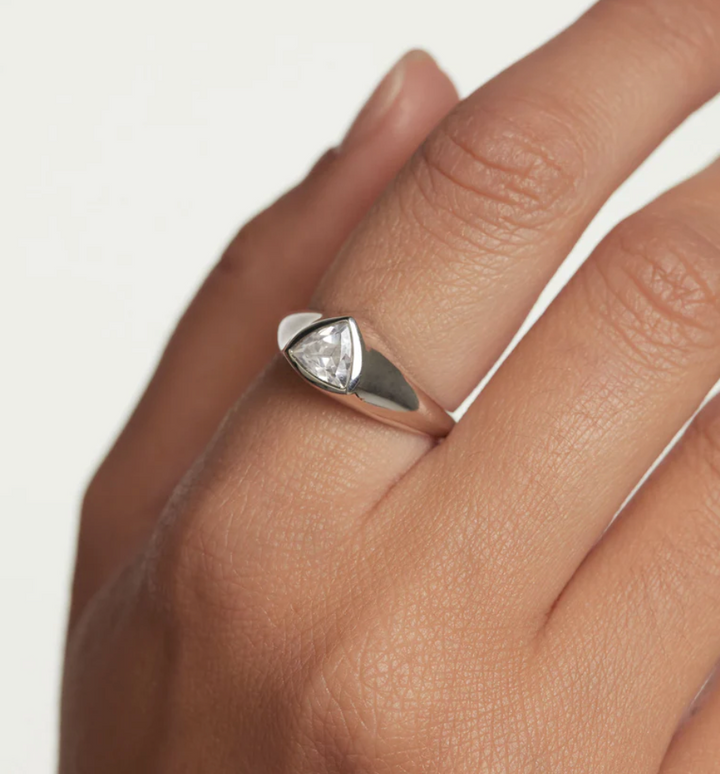 PD PAOLA Silver Triangle Shimmer Stamp Ring