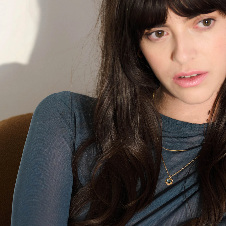 Feel the love in this exquisite heart necklace adorned with a hand-carved Sapphire and signature Art Deco rays. Sapphire is the birthstone for September and is also thought to bring the wearer love & wisdom.