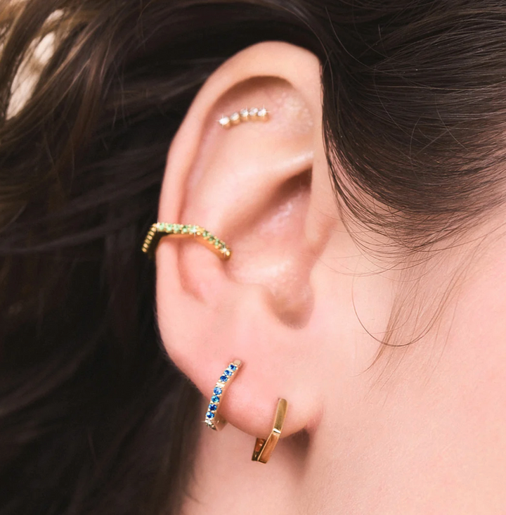 Our signature hexagon huggie hoop earring crafted in solid 9ct Gold. You can wear it solo, stacked or as a helix piercing. Sold as a single!