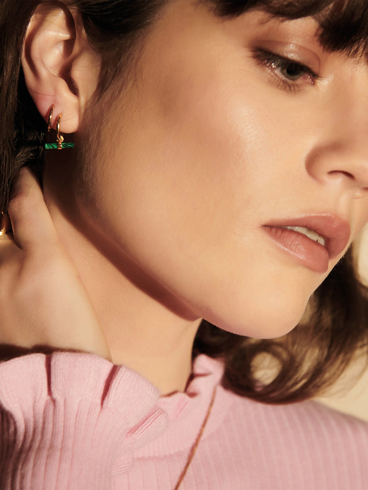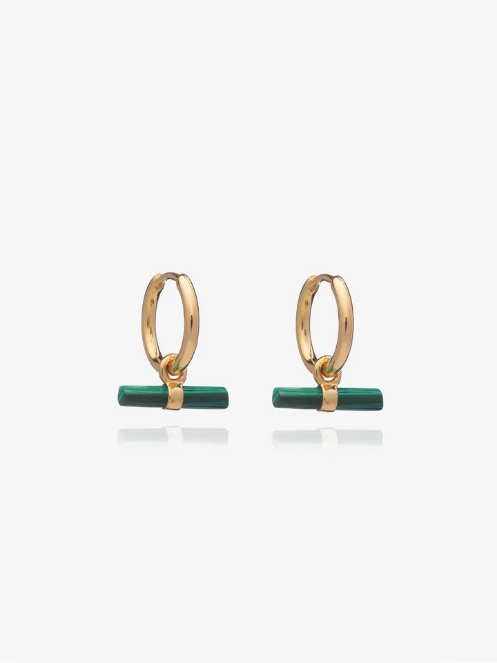 Rachel Jackson Gold Mini Malachite T-Bar Huggie Hoops