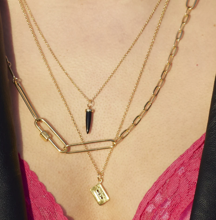 A bold jet-black hues to your outfit with this black spike necklace, which can be worn short or long with the adjustable slider clasp.