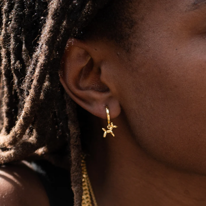 Introducing our playful Scream Pretty Balloon Dog Charm Hoop Earrings!