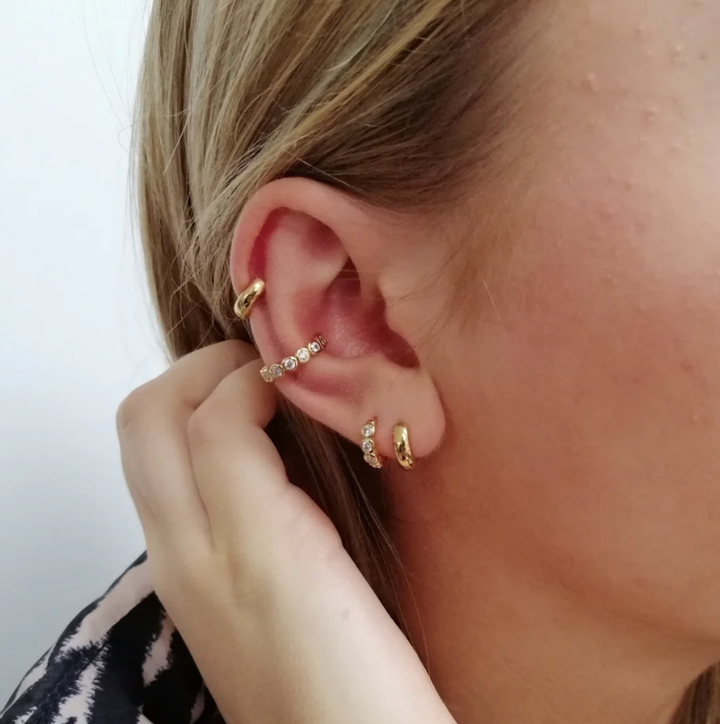 This daring chunky huggie earring design offers an exquisite hoop that is eternally stylish and a bold substitute for a timeless classic.