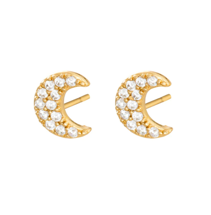 Add celestial styling to your ears with these sparkling crescent moon stud earrings! Ideal for daily wear they provide your style with a hint of shimmer.