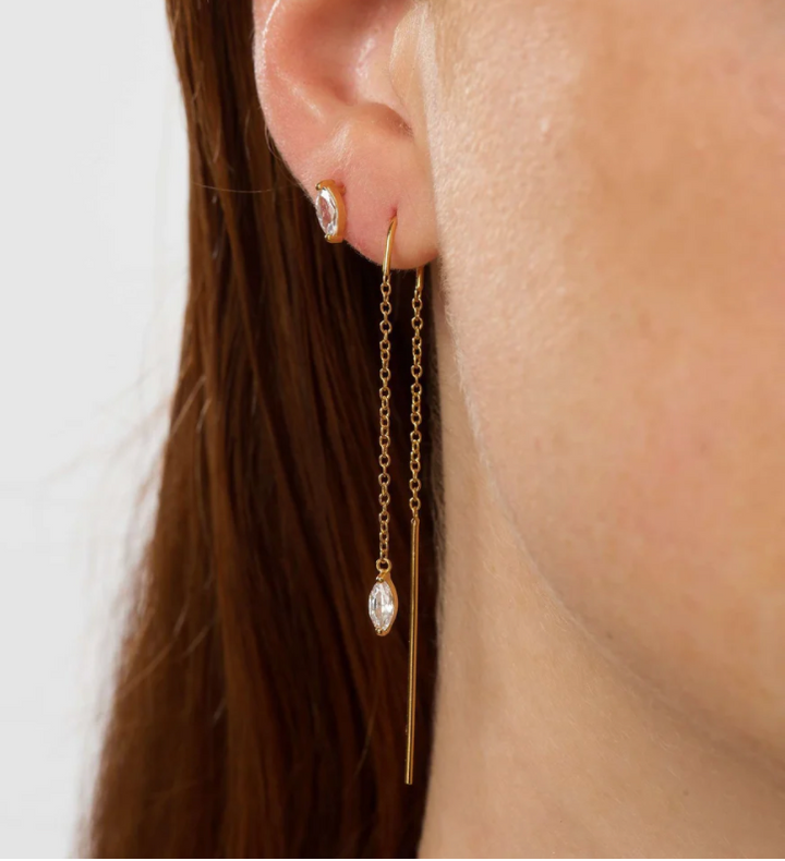Simple yet elegant these Scream Pretty droplet crystal threader earrings make the perfect dangly earring accessory for everyday wear!