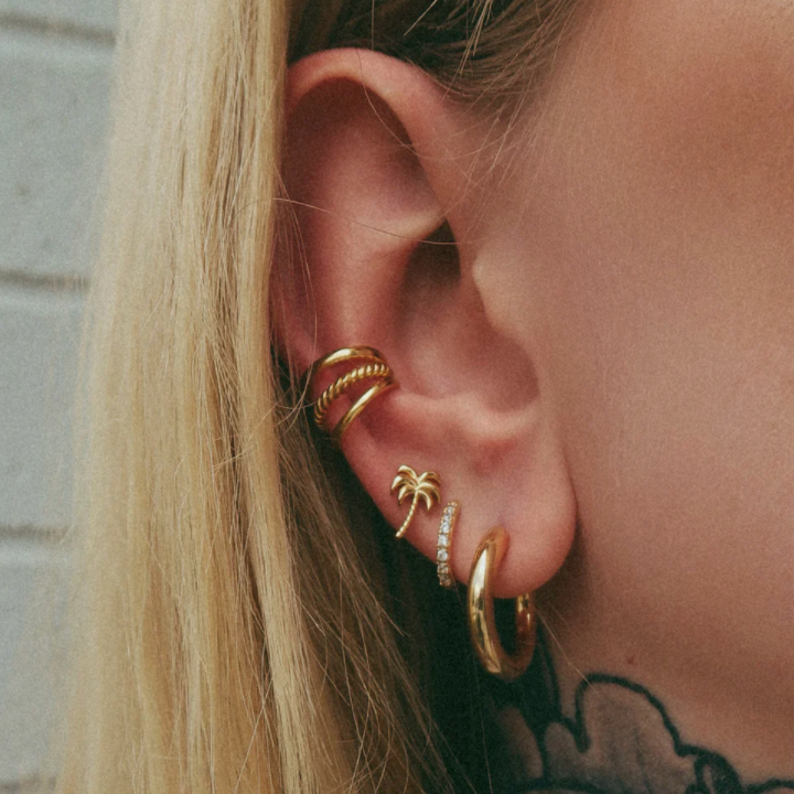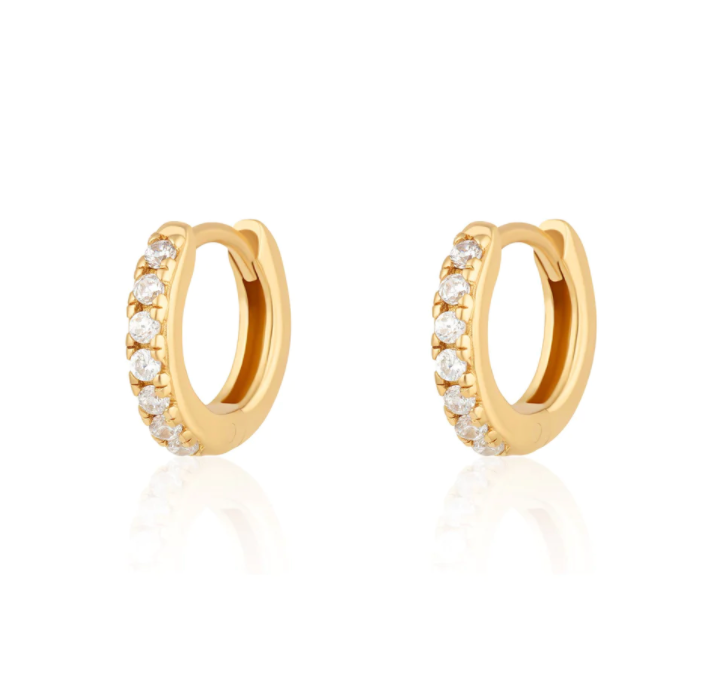 Scream Pretty Gold Huggie Earrings with Clear Stones