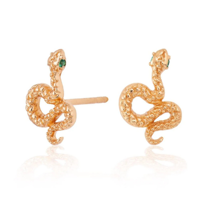 Scream Pretty Gold Snake Stud Earrings with Green Eyes