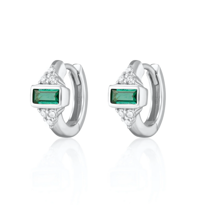 Scream Pretty Silver Audrey Huggie Earrings with Green Stones