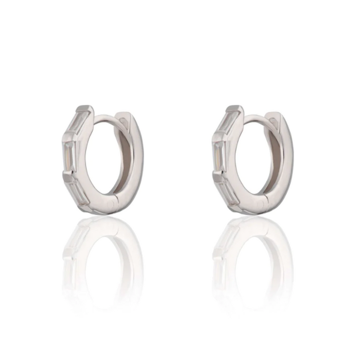 Scream Pretty Silver Baguette Huggie Earrings with Clear Stones