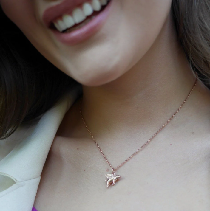 This flying pig necklace is a quirky design that will make a lovely good luck charm; a celebration of a wild dream waiting to be realised.